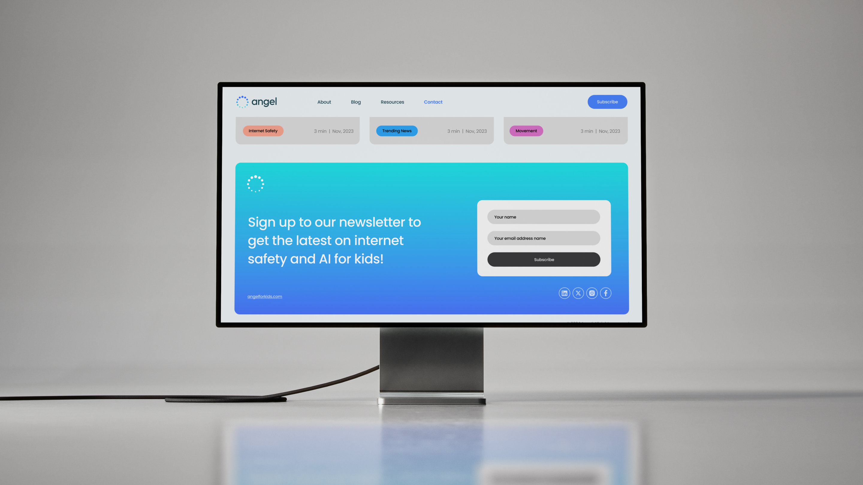 Brazen Studios built a thought leadership platform for Angel (now AngelQ), a children’s AI browsing startup. We designed and developed a custom Ghost-powered blog and newsletter site for founder Tim Estes to share insights and drive engagement. Alongside the website, we produced a social media campaign to amplify Angel’s content — establishing the startup as a trusted voice in kid-safe technology.