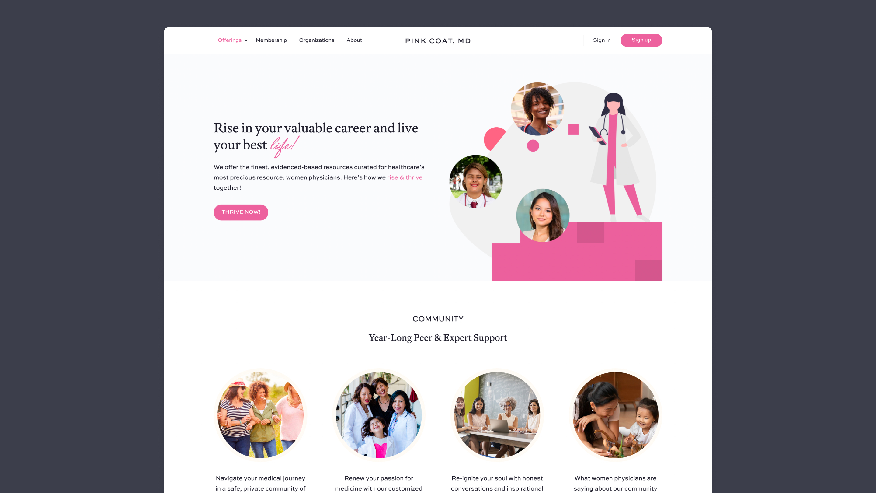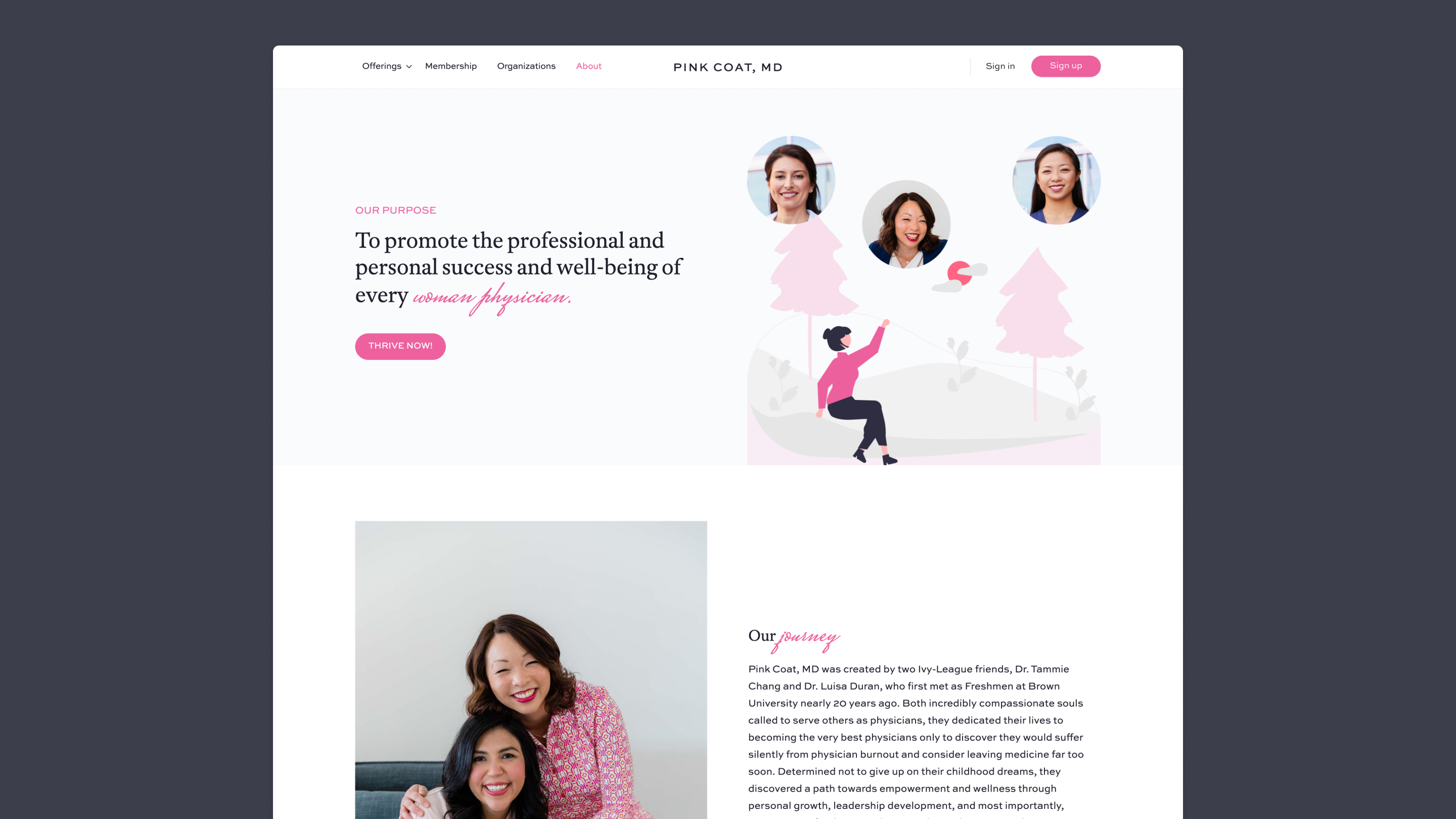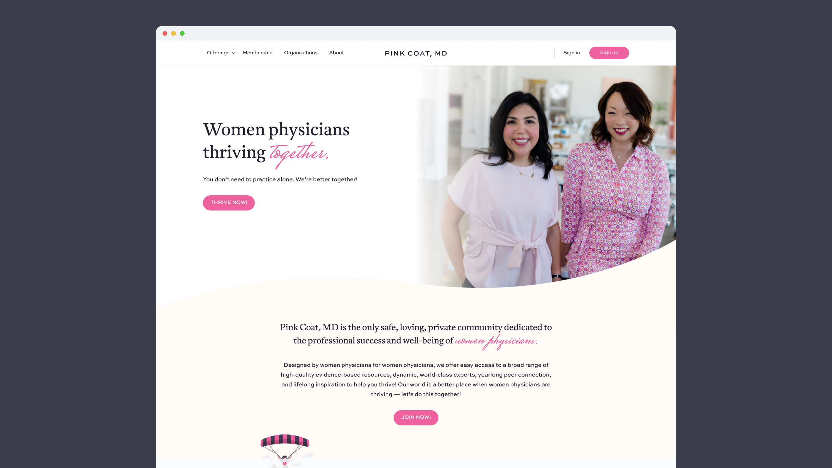Pink Coat, MD is an online community for women physicians, and it needed a digital platform as empowering as its mission. We delivered a full brand identity and website, including an integrated learning management system for courses, webinars, and member resources. Optimized for user experience, the new platform supports Pink Coat’s mission of helping women doctors connect, learn, and thrive.