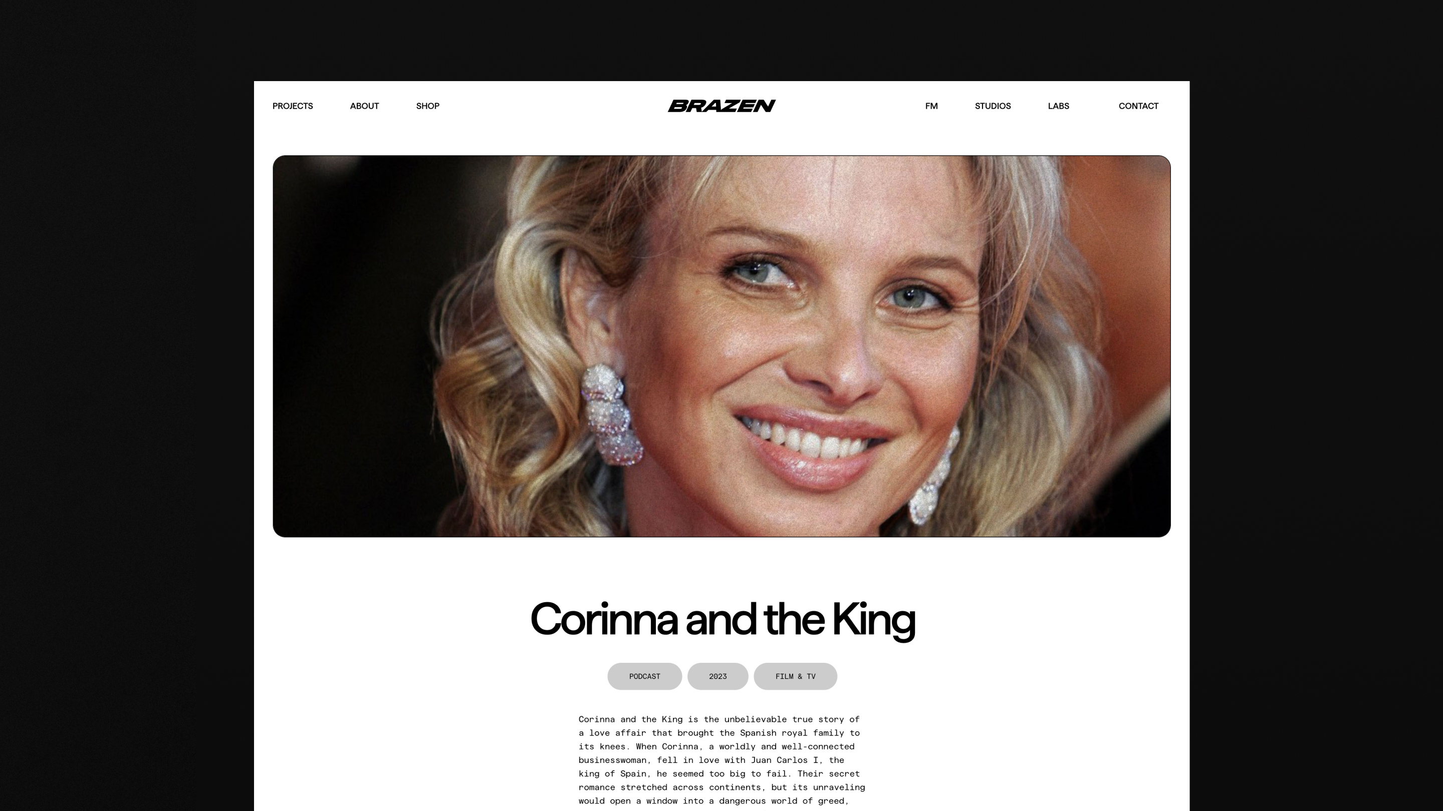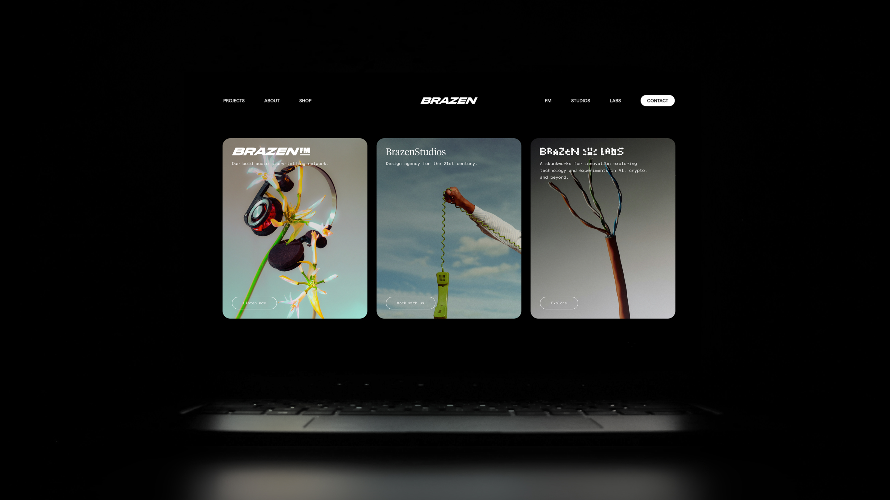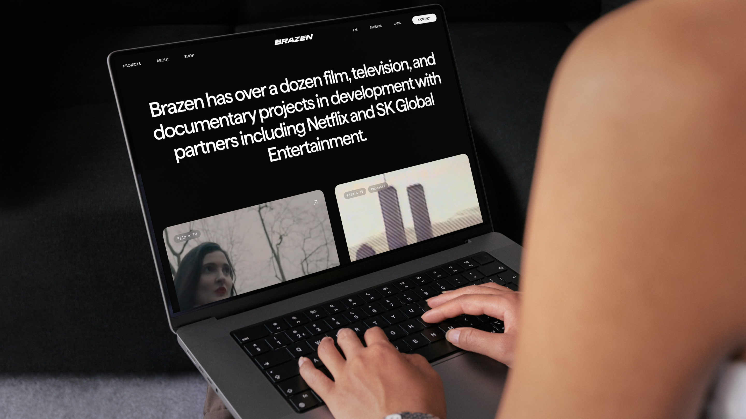 Brazen Studios refreshed the brand identity and website for our parent company, Project Brazen. We simplified the logomark to just “Brazen” and redesigned the website to showcase Brazen’s upcoming film/TV projects and limited-series podcasts. The B2B-focused overhaul sharpened the brand’s image while highlighting its bold, unconventional storytelling ventures.