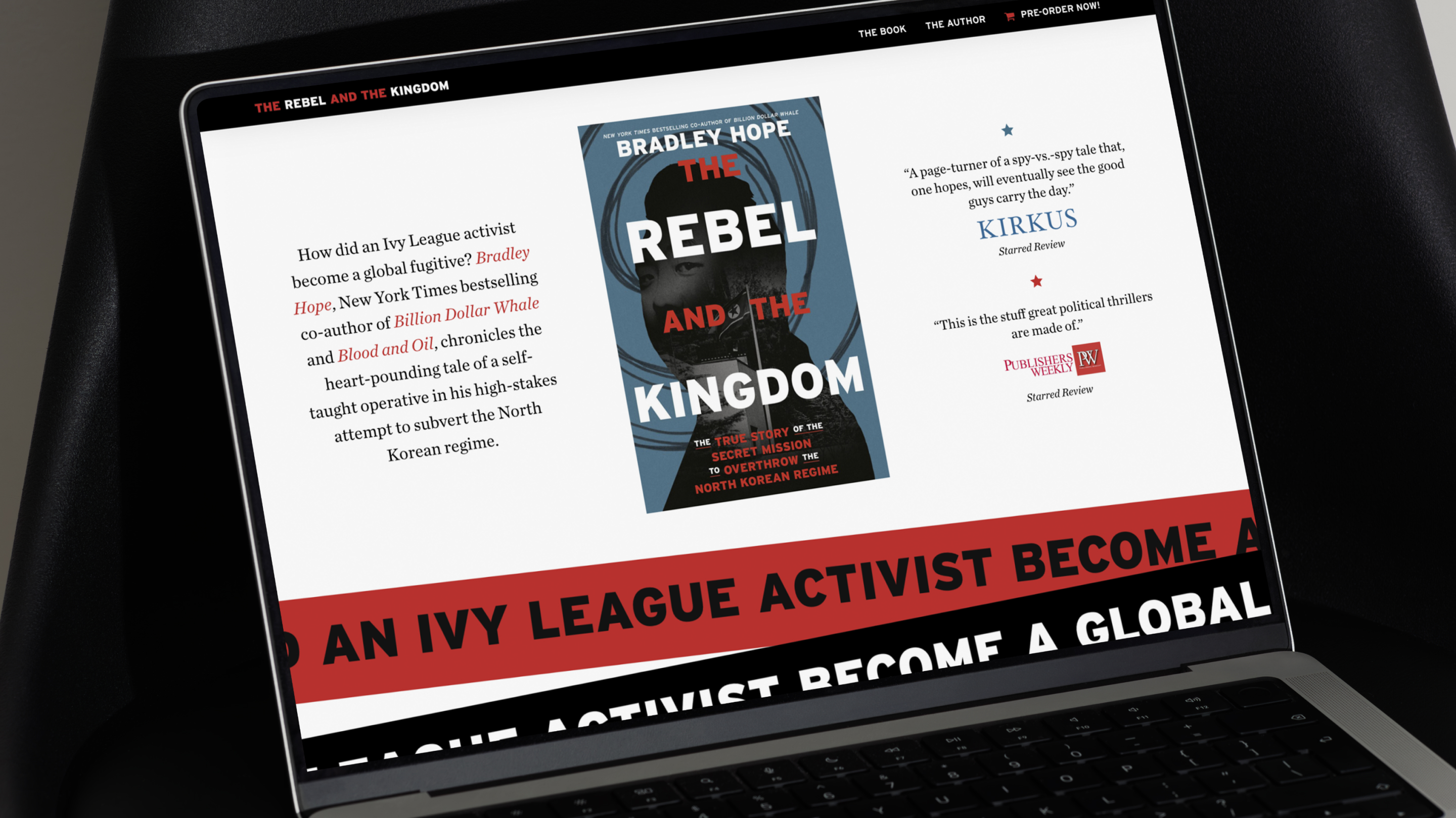 When Bradley published The Rebel and the Kingdom – a true story of a daring plot to infiltrate North Korea – we decided the project needed an impactful web presence. Brazen Studios developed an editorial-style landing page based on the book cover look and feel, featuring immersive visuals and bonus content to draw readers deeper into the story. The site engaged readers and served as a dynamic digital companion to the book’s release.